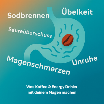 Magenbeschwerden treffen viele Menschen – oft aus heiterem Himmel, häufig aber schleichend. Es beginnt mit einem Druckgefühl nach dem Aufstehen, einem brennenden Ziehen hinter dem Brustbein, Blähungen, Völlegefühl oder Übelkeit, und schon kippt der Tag. Besonders tückisch: Wer auf nüchternen Magen zu schwarzem Kaffee oder Energy‑Drinks greift, erlebt nicht selten eine Verschärfung der Symptome. Bei Kaffee ist es die Kombination aus Säuren und einer starken Stimulation der Magensekretion, die den empfindlichen Magen belasten kann. Energy‑Drinks bringen zusätzlich Kohlensäure und niedrige pH‑Werte ins Spiel – ein Gemisch, das die Speiseröhre durch Reflux reizen und den Magen fordern kann.¹ ² Die Folge: statt Fokus und Leichtigkeit dominieren Sodbrennen, Druck und Müdigkeit.