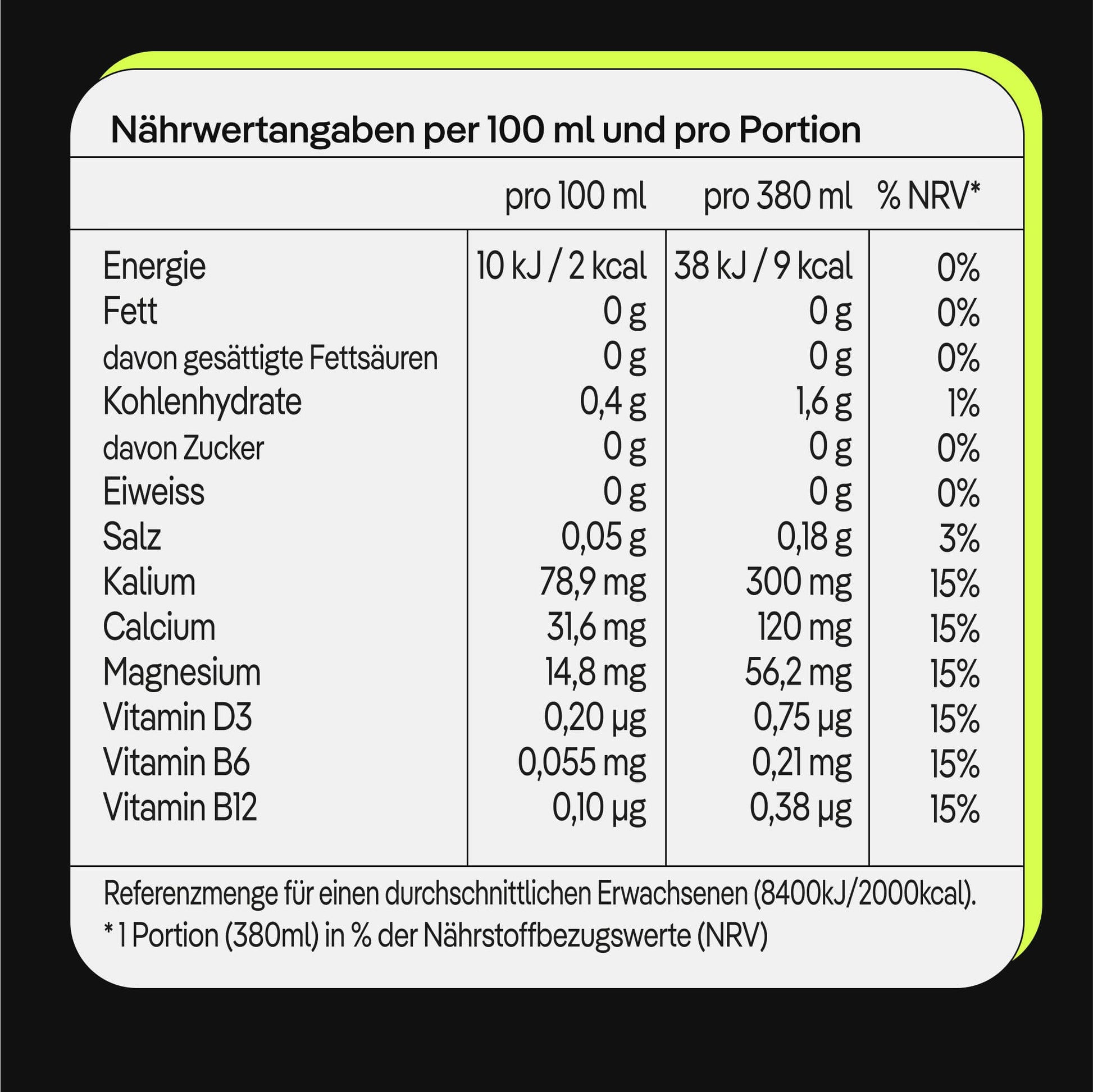 Ein funktionaler Drink mit Elektrolyten + natürlichem Koffein. Wach, klar, ohne Crash. Ohne Zucker. Ohne Schnickschnack.