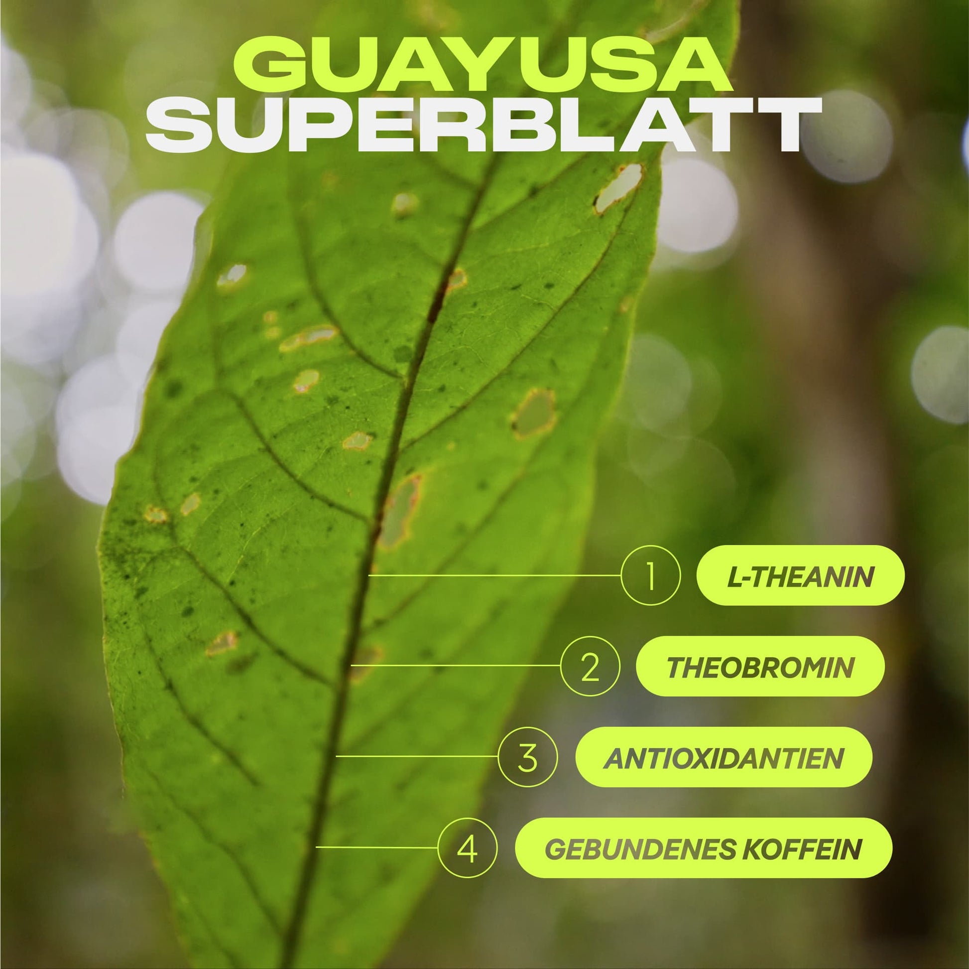 Guayusa ist kein Trend, sondern ein smarter Koffeinträger. Lang anhaltend, smooth im Effekt, zero Zittern. Wird in Ecuador seit Generationen für Fokus genutzt.