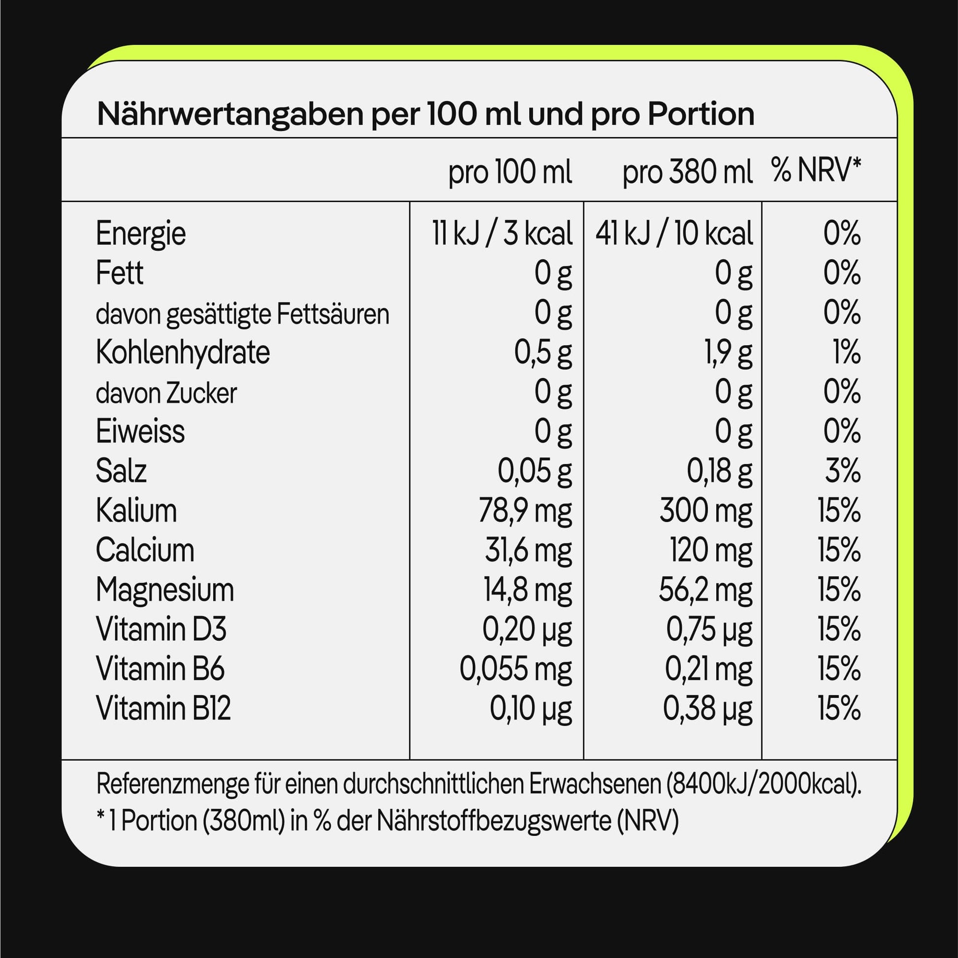 Ein funktionaler Drink mit Elektrolyten + natürlichem Koffein. Wach, klar, ohne Crash. Ohne Zucker. Ohne Schnickschnack.